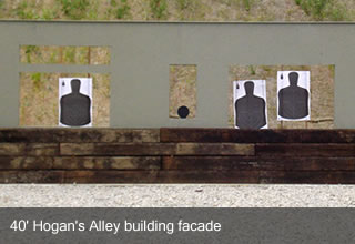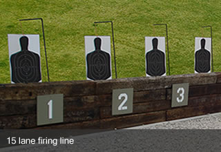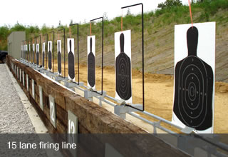 The main range is configured to allow for 300 yard shots and has a full 15 lane firing line at the 100 yard line. The target line contains high speed turning and moving targets and a 40' Hogan's Alley building facade which contains moving paper and steel targets. All targets were provided by Action Target.
